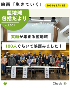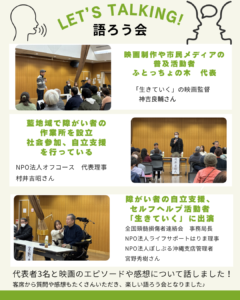 R8年3/13、藍市民センターで映画「生きていく」の上映会と語ろう会を行いました!