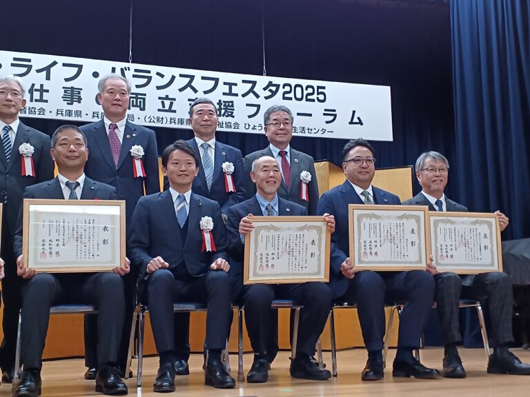 率先して取り組んでいる企業として、当法人が「ひょうご仕事と生活のバランス企業」に表彰されました。